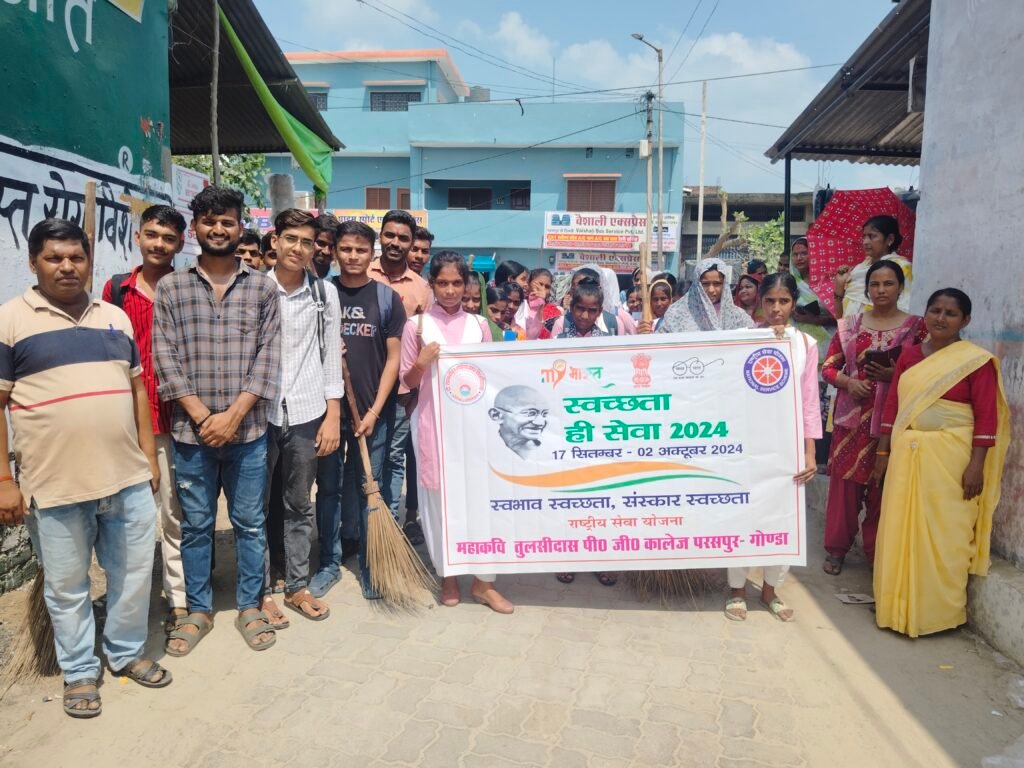 परसपुर (गोण्डा): स्थानीय महाकवि तुलसीदास पी.जी. कॉलेज परसपुर में मंगलवार को राष्ट्रीय सेवा योजना (NSS) के स्थापना दिवस के उपलक्ष्य में एक भव्य कार्यक्रम का आयोजन किया गया। इस अवसर पर महाविद्यालय के स्वयंसेवक और स्वयंसेविकाओं ने स्वच्छता अभियान के तहत कॉलेज परिसर और उसके आस-पास के क्षेत्रों की सफाई कर स्वच्छता का संदेश जन-जन तक पहुंचाया। अभियान के तहत राज मंदिर राजा सगरा क्षेत्र की सफाई की गई, जहां विद्यार्थियों ने लगभग 500 मीटर क्षेत्र में सफाई करते हुए स्वच्छता का महत्व बताया और लोगों को स्वच्छता के प्रति जागरूक किया।