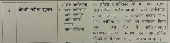 गोंडा : श्री मती नवीना शुक्ला को सर्किल करनैलगंज का नया क्षेत्राधिकारी बनाया गया है ।
