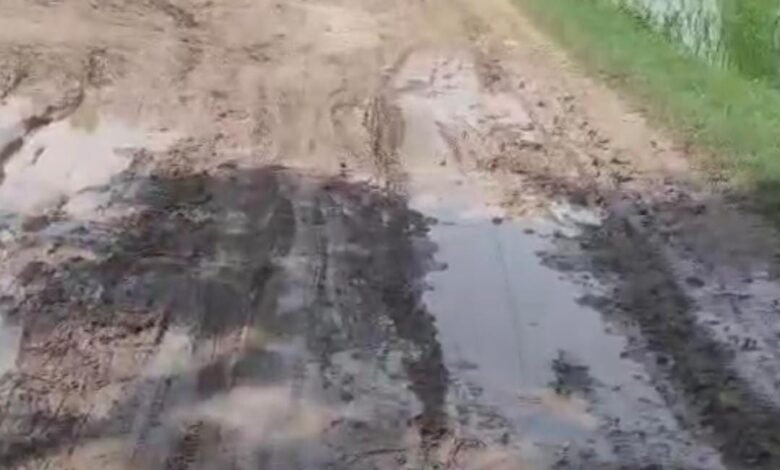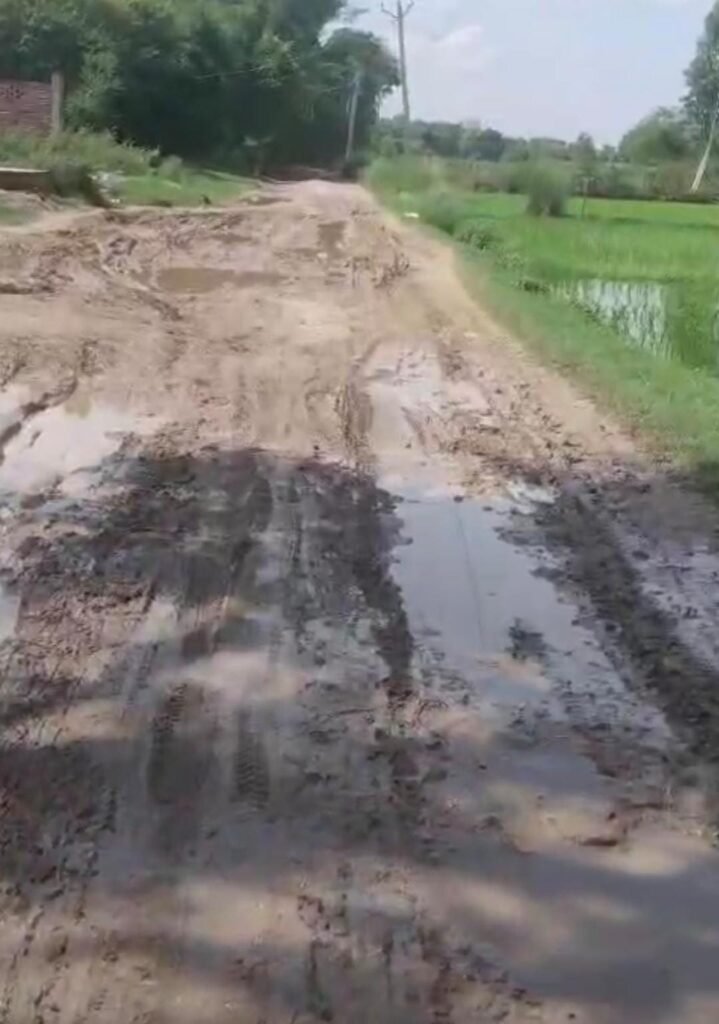 गोंडा : जर्जर सड़क बनी ग्रामीणों की मुसीबत, बारिश में दलदल में तब्दील हुआ रास्ता