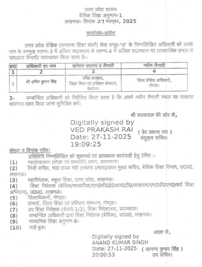 गोंडा : गोंडा को मिला नया बीएसए, 16 दिन से खाली पड़े पद पर अब लगी मुहर – अमित कुमार सिंह की हुई तैनाती