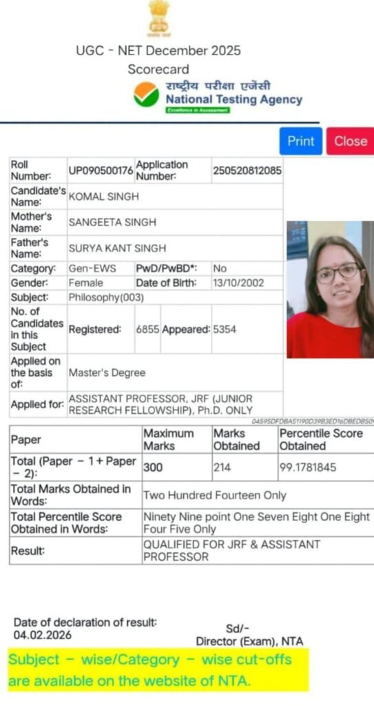 गोंडा : कोमल सिंह ने जेआरएफ की परीक्षा उत्तीर्ण कर बढ़ाया जिले का मान