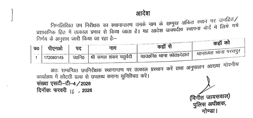 गोंडा : परसपुर एसओ लाइन हाजिर, कमल शंकर चतुर्वेदी को सौंपी गई परसपुर थानाध्यक्ष की कमान
