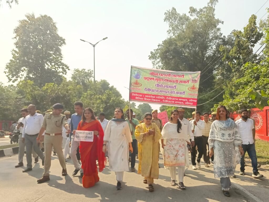 गोंडा : दीपावली के पावन अवसर पर पर्यावरण संरक्षण और प्रदूषण मुक्त त्योहार मनाने के उद्देश्य से गुरुवार को गोण्डा शहर में एक प्रेरणादायक जागरूकता रैली का आयोजन किया गया। रैली की शुरुआत आयुक्त आवास से हुई जिसे देवीपाटन मंडल के आयुक्त शशि भूषण लाल सुशील और उनकी पत्नी गरिमा भूषण ने हरी झंडी दिखाकर रवाना किया। स्कूली बच्चों और बच्चियों से सजी यह रैली अंबेडकर चौराहा होते हुए पुनः आयुक्त आवास पर आकर संपन्न हुई।