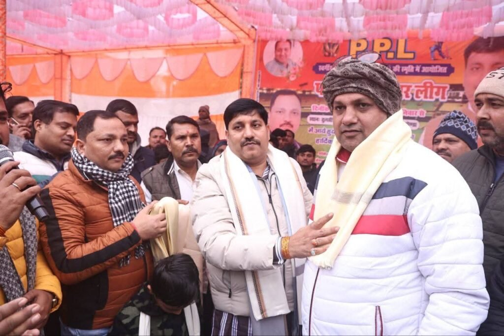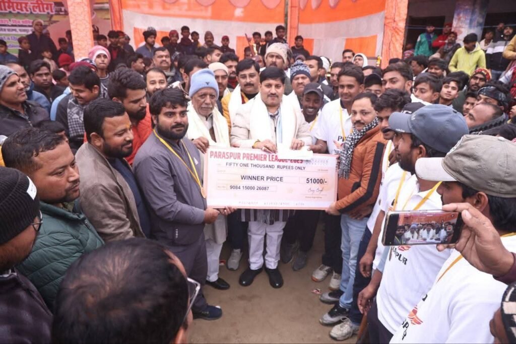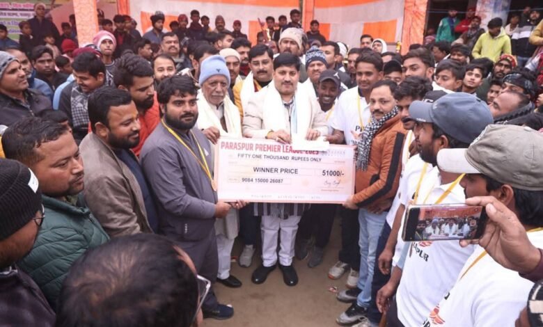 परसपुर ( गोंद ) : नगर पंचायत परसपुर स्थित तुलसी स्मारक इंटर कॉलेज के खेल मैदान में कोरोना काल में हम सबको छोड़कर जाने वाले दिवंगत साथी धर्मेंद्र प्रताप सिंह ‘बल्लू’ की पुण्य स्मृति में आयोजित 7 दिवसीय परसपुर प्रीमियम लीग (पीपीएल) क्रिकेट टूर्नामेंट का शनिवार को भव्य समापन हुआ। समापन अवसर पर विधानसभा क्षेत्र करनैलगंज के जनप्रतिनिधि विधायक अजय सिंह की गरिमामयी उपस्थिति रही। फाइनल मुकाबला चेतना स्पोर्ट्स परसपुर एवं स्टार इलेवन कैसरगंज के बीच खेला गया, जो शुरू से अंत तक बेहद रोमांचक और दर्शनीय रहा।