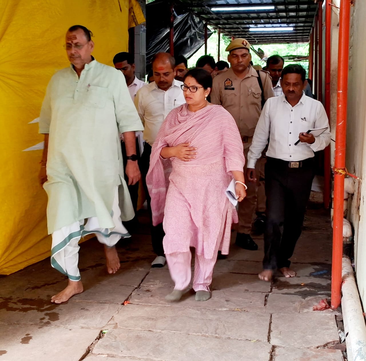 मीरजापुर 20 सितम्बर 2023- जिलाधिकारी प्रियंका निरंजन ने आज पूर्वान्ह लगभग 08ः30 बजे विन्ध्याचल पहंुचकर मा0 विधायक नगर श्री रत्नाकर मिश्र के साथ त्रिकोण परिक्रमा पथ का विकास एवं सौन्दर्यीकरण के दृष्टिगत तीनो मन्दिरों व मन्दिर जाने वाले मार्गो का भ्रमण कर निरीक्षण किया। जिलाधिकारी ने कहा कि त्रिकोण परिक्रमा पथ का विकास एवं मां विन्ध्यवासिनी मन्दिर, मां अष्टभुजा मन्दिर तथा मां कालीखोह मन्दिर का उनकी महिमा के अनुरूप सौन्दर्यीकरण कराया जाने हेतु नगर मजिस्ट्रेट सम्बन्धित अधिकारियों के साथ विस्तृत कार्ययोजना/प्रस्ताव बनाकर प्रस्तुत करें। निरीक्षण के दौरान सर्वप्रथम जिलाधिकारी ने कालीखोह मन्दिर पहंुचकर मन्दिर तक पहंुच मार्ग एवं मन्दिर गर्भ गृह व मन्दिर के आस पास भ्रमण कर निरीक्षण किया गया तथा एन0एच0-35 से मां कालीखोह मन्दिर तक तथा एन0एच0-35 से अष्टभुजा मन्दिर तक सड़को के चैड़ीकरण का प्रस्ताव एवं अनुमानित लागत आगणन तैयारकर प्रस्तुत करने का निर्देश सम्बन्धित अधिकारियों को दिया। एन0एच0-35 से अष्टभुजा मन्दिर (अकोढ़ी की तरफ) से अष्टभुजा मार्ग मन्दिर की सीढ़ियो तक की चैड़ाई कम है तथा मार्ग के दोनो तरफ अतिक्रमणकर्ताओं के द्वारा प्लास्टिक की पन्नी लगाकर मार्ग को अवरूद्ध किया गया है जिससे मार्ग पर सपोकेशन होने के साथ ही आावगमन भी बाधित होती हैं। अवैध अतिक्रमण को तत्काल अभियान चलाकर हटाने का निर्देश नगर मजिस्ट्रेट को दिया गया। उन्होने अधिशासी अभियन्ता प्रान्तीय खण्ड लोक निर्माण विभाग एवं उप जिलाधिकारी सदर को निर्देशित करते हुये कहा कि इन सड़को को चैड़ीकरण कराने के दृष्टिगत नजरी नक्शा के साथ अपने संयुक्त आख्या प्रस्तुत करें। अष्टभुजा मन्दिर एवं कालीखोह मन्दिर के सौन्दर्यीकरण का प्रस्ताव भी स्थलीय निरीक्षण तैयार करने का निर्देश दिया। निरीक्षण के दौरान मा0 विधायक नगर के साथ अष्टभुजा मार्ग एवं मन्दिर सीढ़ियों से लेकर मन्दिर परिसर, गर्भ गृह का स्थलीय निरीक्षण किया गया। मार्ग चैड़ीकरण के दौरान अष्टभुजा मन्दिर की सीढ़ियों पर वृद्ध एवं असशक्त लोगो को मन्दिर जाने हेतु रैम्प बनाये जाने का भी प्रस्ताव में शामिल करने का निर्देश दिया गया। इसी प्रकार अष्टभुजा मन्दिर सीढ़ियों के पूर्व की तरफ यज्ञशाला का निर्माण किया गया है इस सम्बन्ध में उप जिलाधिकारी को निर्देशित किया गया कि जांचोपरान्त किस प्रकार की भूमि पर बनाया गया है विवरण उपलब्ध कराने का निर्देश दिया गया। मां विन्ध्यवासिनी मन्दिर के सौन्दर्यीकरण भी चर्चा की गयी तथा हेलीपैड, कार/मोटर साइकिल के अलावा बड़े वाहनो के पार्किंग बनाने हेतु भूमि का भी निरीक्षण जिलाधिकारी द्वारा किया गया। इस अवसर पर नगर मजिस्ट्रेट विनय कुमार सि