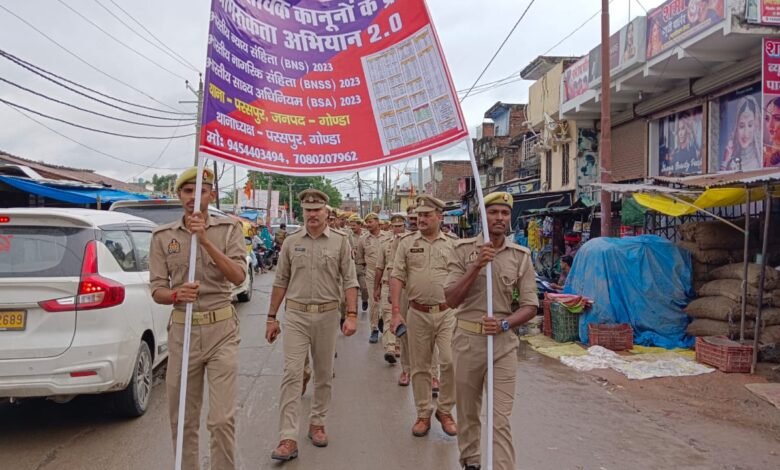 इस दौरान पुलिस टीम ने सुरक्षा का एहसास कराते हुए बीएनएस, बीएसए और बीएनएसएस कानूनों के बारे में जानकारी दी, पोस्टर चिपकाए और पंपलेट बांटे। जुमे की नमाज को देखते हुए कस्बा स्थित बड़ी मस्जिद तक पैदल मार्च कर सुरक्षा व्यवस्था का भी जायजा लिया गया। इस अवसर पर वरिष्ठ उपनिरीक्षक अमित सिंह, दिनेश सिंह, सुबेंद्र सिंह , अमित गुप्ता, अमित यादव, आनंद सिंह, जगतपति तिवारी, रवि प्रकाश यादव, सौरभ वर्मा, अमन कनौजिया, अजय सिंह, अखिलेश सहित महिला व पुरुष आरक्षी शामिल रहे।