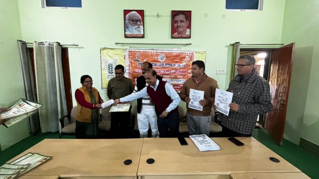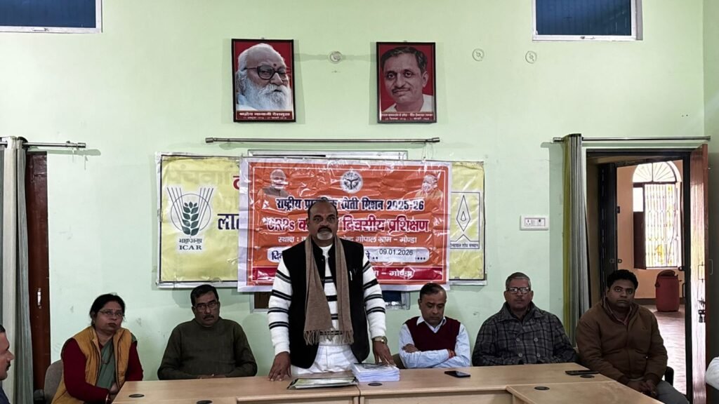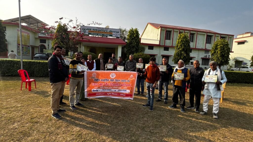 परसपुर/गोंडा। दीनदयाल शोध संस्थान, लाल बहादुर शास्त्री कृषि विज्ञान केंद्र, गोंडा में राष्ट्रीय प्राकृतिक खेती मिशन के अंतर्गत संचालित सीआरपी (कम्युनिटी रिसोर्स पर्सन) प्रशिक्षण कार्यक्रम के दौरान स्वामी विवेकानंद जयंती गरिमामय वातावरण में मनाई गई। इस अवसर पर स्वामी विवेकानंद के चित्र पर पुष्पांजलि अर्पित कर उन्हें श्रद्धांजलि दी गई। साथ ही प्रशिक्षण कार्यक्रम में उत्कृष्ट सहभागिता करने वाले सीआरपी प्रतिभागियों को प्रशस्ति पत्र प्रदान कर सम्मानित किया गया।