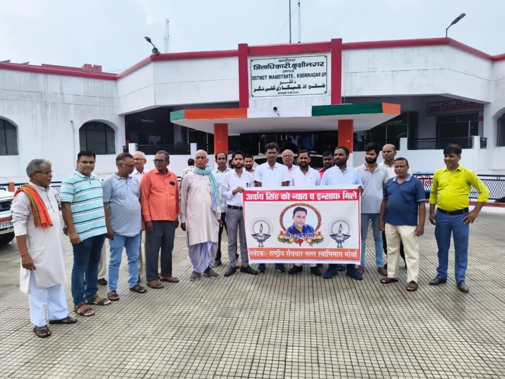 आज डी यम कार्यलय कुशीनगर मे पहुंच कर राष्ट्रीय सैथवार मल्ल स्वाभिमान मोर्चा के बैनर तले ज्ञापन दिया गया जिसमें हमारी मांगे थी स्व0 उत्कर्ष सिंह