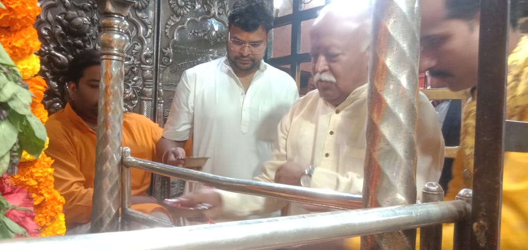 मिर्जापुर ।RSS चीफ मोहन भागवत पहुचे विन्ध्याचल धाम, एक दिन के प्रवास के दौरान सुबह पहुचे माँ विंध्यवाशिनी मंदिर, किया दर्शन पूजन, विधि विधान से मोहन भागवत ने किया दर्शन पूजन, दर्शन पूजन के दौरान सुरक्षा व्यबस्था दिखी चुस्त दुरुस्त, दर्शन पूजन के बाद निर्माणाधीन विन्ध कॉरिडोर की देखी झलक, विन्ध्याचल से निकले मोहन भागवत जनपद प्रयागराज के लिए हुए रवाना ।निर्मल दुबे ब्यूरो प्रमुख मिर्जापुर