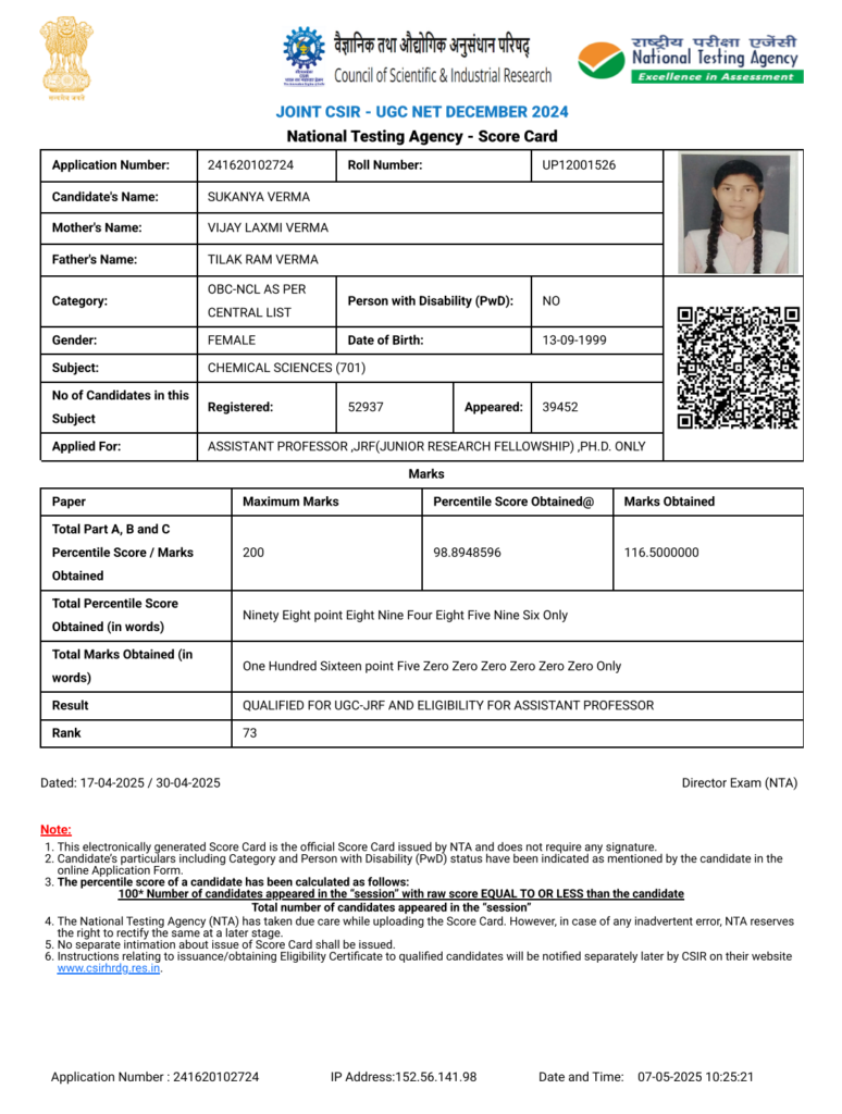 गोंडा : परसपुर की होनहार सुकन्या वर्मा ने UGC नेट में 73वीं रैंक पाई, IIT दिल्ली से रिसर्च का मिला कॉललेटर