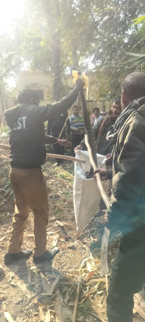 सीतापुर की तहसील लहरपुर के अतर्गत आने वाली ग्राम पंचायत चंदेसुवा में विशालकाय अजगर को देखकर हड़कप मच गया सूचना वन विभाग को दी गई जिस पर वन अधिकारी अभिषेक सिंह के नेतृत्व में वन दरोगा अरविंद गिरी एवं वन कर्मी बुधराम, रमेश, गजराज, लालाराम मय टीम के साथ पहुंच कर बड़ी मशक्कत कर विशालकाय अजगर को पकड़ कर सुरक्षित प्राकृतवास में सुरक्षित छोड़ा गया