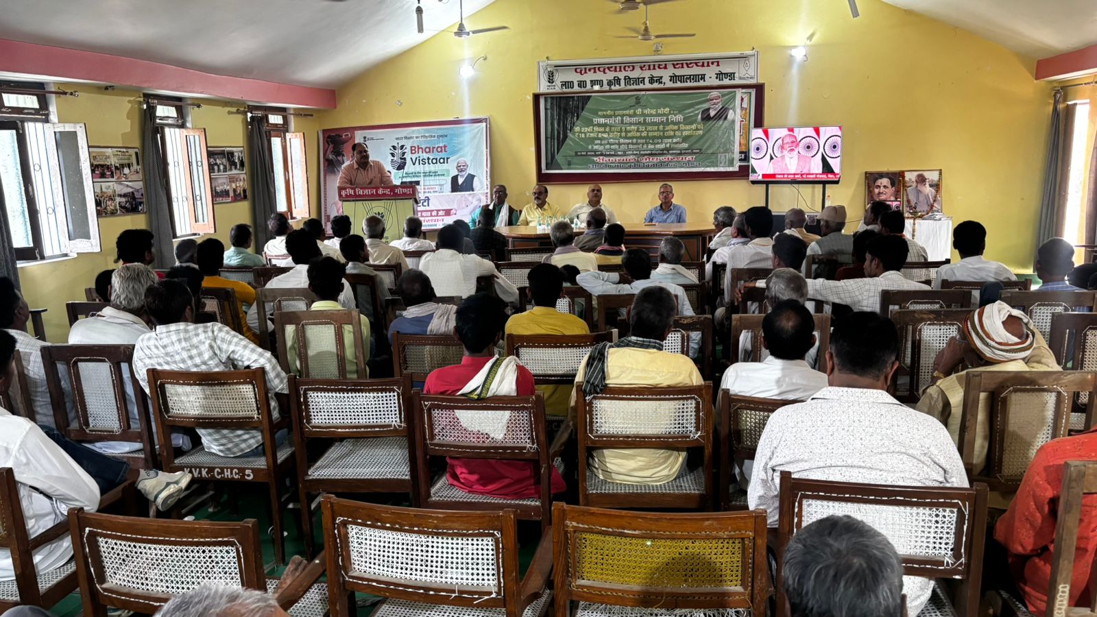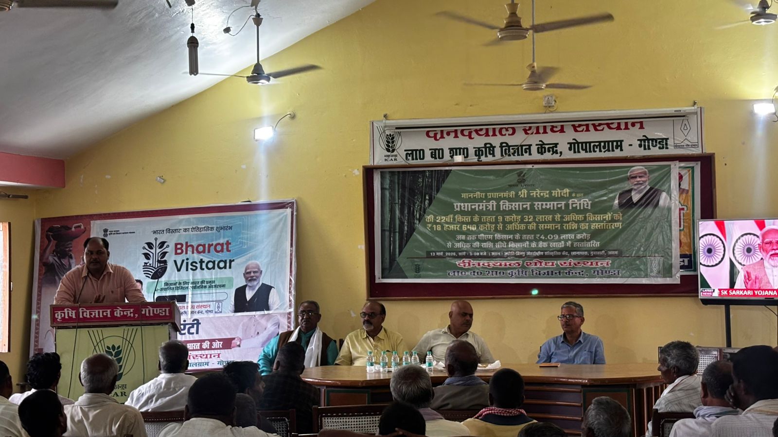 परसपुर (गोंडा) । दीनदयाल शोध संस्थान, लाल बहादुर शास्त्री कृषि विज्ञान केंद्र गोपालग्राम (गोंडा) एवं कृषि विभाग के संयुक्त तत्वावधान में प्रधानमंत्री किसान सम्मान निधि योजना के अंतर्गत आयोजित कार्यक्रम का आज कृषि विज्ञान केंद्र परिसर में लाइव प्रसारण किया गया। इस अवसर पर प्रधानमंत्री द्वारा देशभर के किसानों को प्रधानमंत्री किसान सम्मान निधि योजना की किस्त हस्तांतरित किए जाने का सीधा प्रसारण किसानों, कृषि अधिकारियों तथा कर्मचारियों द्वारा सामूहिक रूप से देखा गया।
