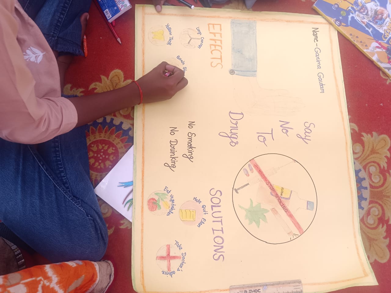 रैली के बाद शिविर स्थल पर लौटकर स्वयंसेवकों ने भोजन ग्रहण किया। इसके पश्चात बौद्धिक सत्र में नशा उन्मूलन विषय पर पोस्टर प्रतियोगिता आयोजित की गई, जिसमें गरिमा गौतम प्रथम, नैन्सी सिंह द्वितीय तथा अर्पित मिश्रा और लक्ष्मी पाण्डेय ने तृतीय स्थान प्राप्त किया। बाद में सड़क सुरक्षा विषय पर गोष्ठी का आयोजन हुआ, जिसमें मुख्य वक्ता के रूप में महाविद्यालय के वनस्पति विज्ञान प्रवक्ता नरेन्द्र पाण्डेय ने स्वयंसेवकों को सड़क सुरक्षा के प्रति सजग रहने और यातायात नियमों का पालन करने का संदेश दिया। अंग्रेजी विभाग क