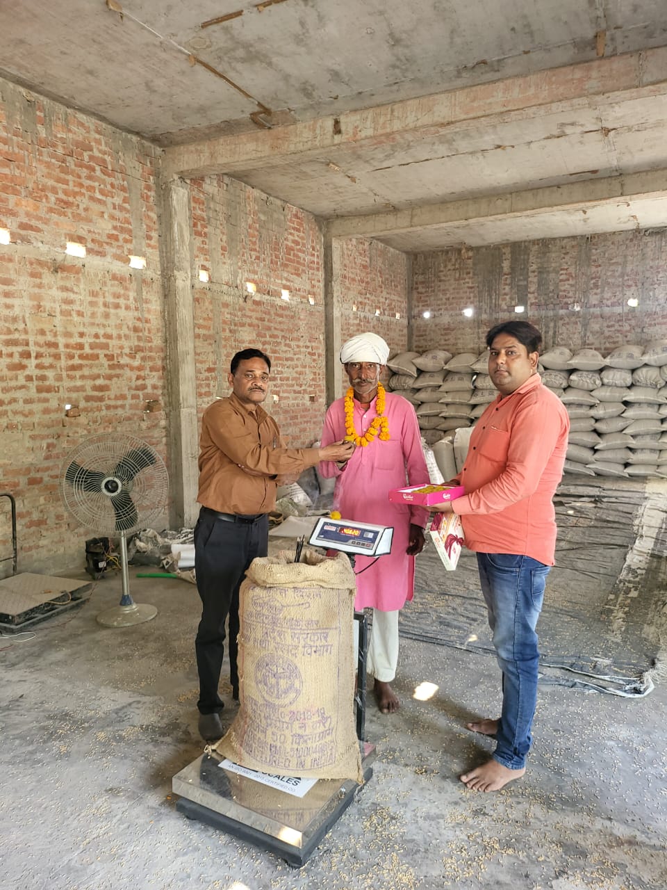 परसपुर / गोंडा : विकासखंड परसपुर में सहकारी साधन समिति त्यौरासी का धान क्रय केंद्र गोगिया (झलवा) में बना है । क्रय केंद्र पर केंद्र प्रभारी (सचिव)प्रवीण शुक्ला ने बताया बुधवार से धान की खरीद शुरू की गई लेकिन पहले दिन कोई भी किसान के धान विक्री के लिये न आने से बोहनी नही हुई वही गुरुवार को यूपीएसएस के जिला प्रबंधक सुरेश कुमार की उपस्थित में 38 कुन्तन धान की खरीद की गई। इस अवसर पर राम कुमार सहित अन्य किसान उपस्थित रहे।