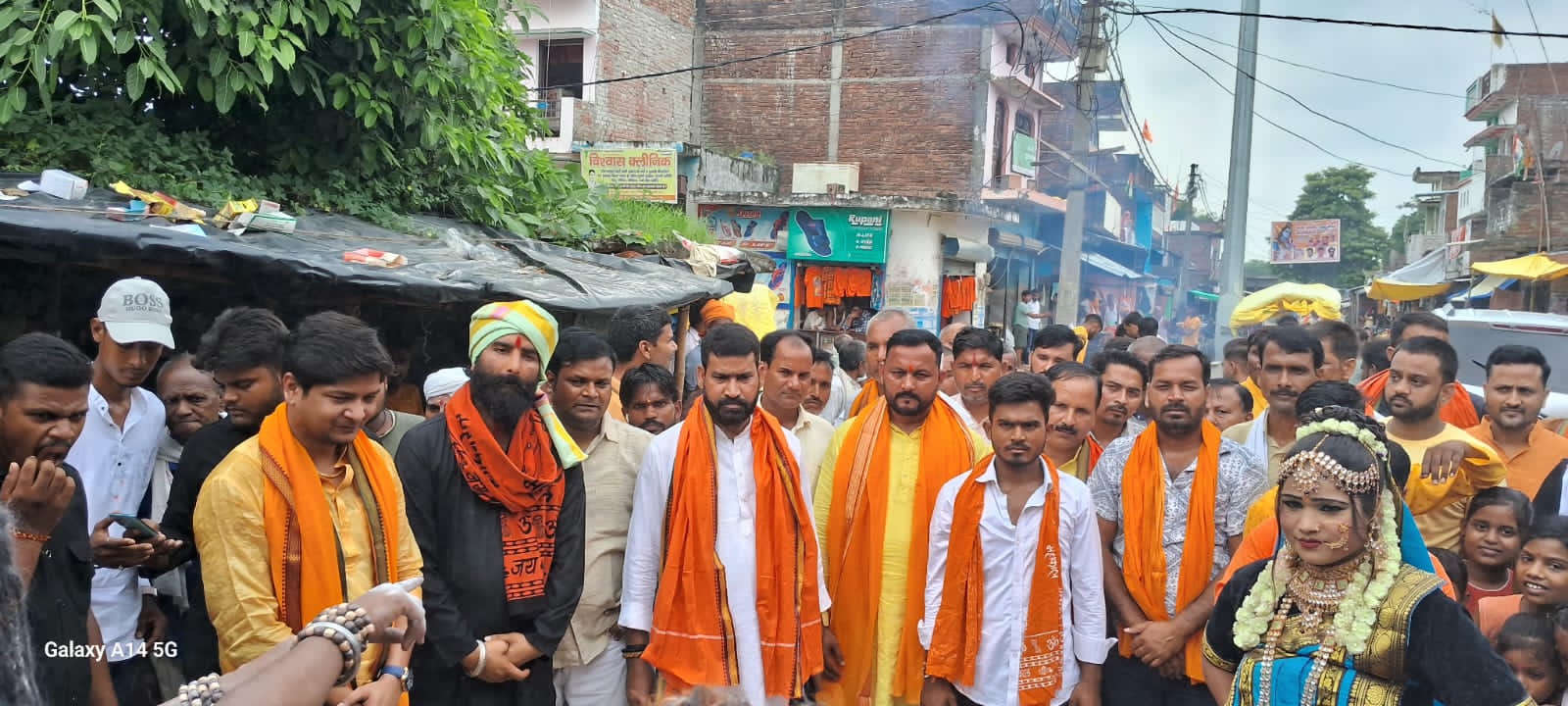 गोण्डा। कजरी तीज के पावन अवसर पर गुरुवार को अवध केसरी सेना द्वारा आयोजित भव्य शोभायात्रा ने क्षेत्र में श्रद्धा और भक्ति का माहौल जीवंत कर दिया। कुंवर राजेंद्र सिंह बच्चा साहब, सी पी बाबा, और हनुमान दत्त भारती जैसे प्रतिष्ठित शिवभक्तों के नेतृत्व में निकाली गई इस यात्रा में हजारों की संख्या में शिव भक्त उमड़े। मांगुरा बाजार स्थित ऐतिहासिक श्री राम जानकी मंदिर से शुरू हुई यह यात्रा अपने पूरे वैभव के साथ शहर के प्रमुख मार्गों से होकर पुनः मंदिर पहुंचकर विधिवत पूजन-अर्चन के साथ संपन्न हुई।