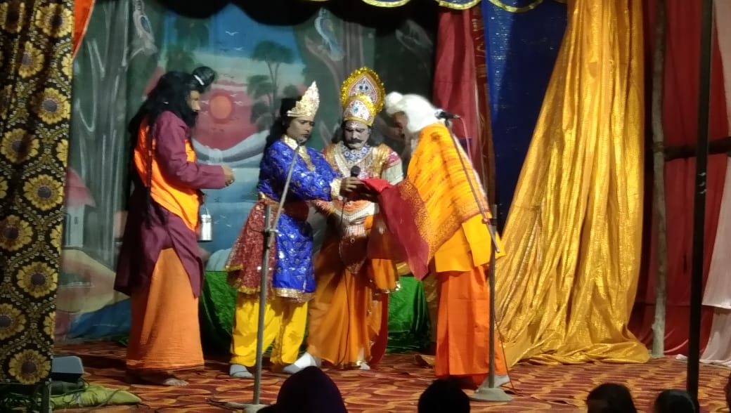 परसपुर गोंडा : राजा रियासत राजमंदिर राजा टोला में अगहन शुक्ल पंचमी तिथि को होने वाले श्री सीताराम विवाह महोत्सव को लेकर अयोध्या से आए हुए कलाकारों द्वारा पांच दिवसीय श्री राम लीला मंचन प्रारंभ हुआ कार्यक्रम के दूसरे दिन भगवान जन्म व नारद मोह पर प्रसंग पर मनमोहक मंचन किया गया । रात्रि में नाट्य रूपांतरण के साथ साथ नृत्य देखने के लिए दर्शकों की काफी भीड़ उमड़ी ।