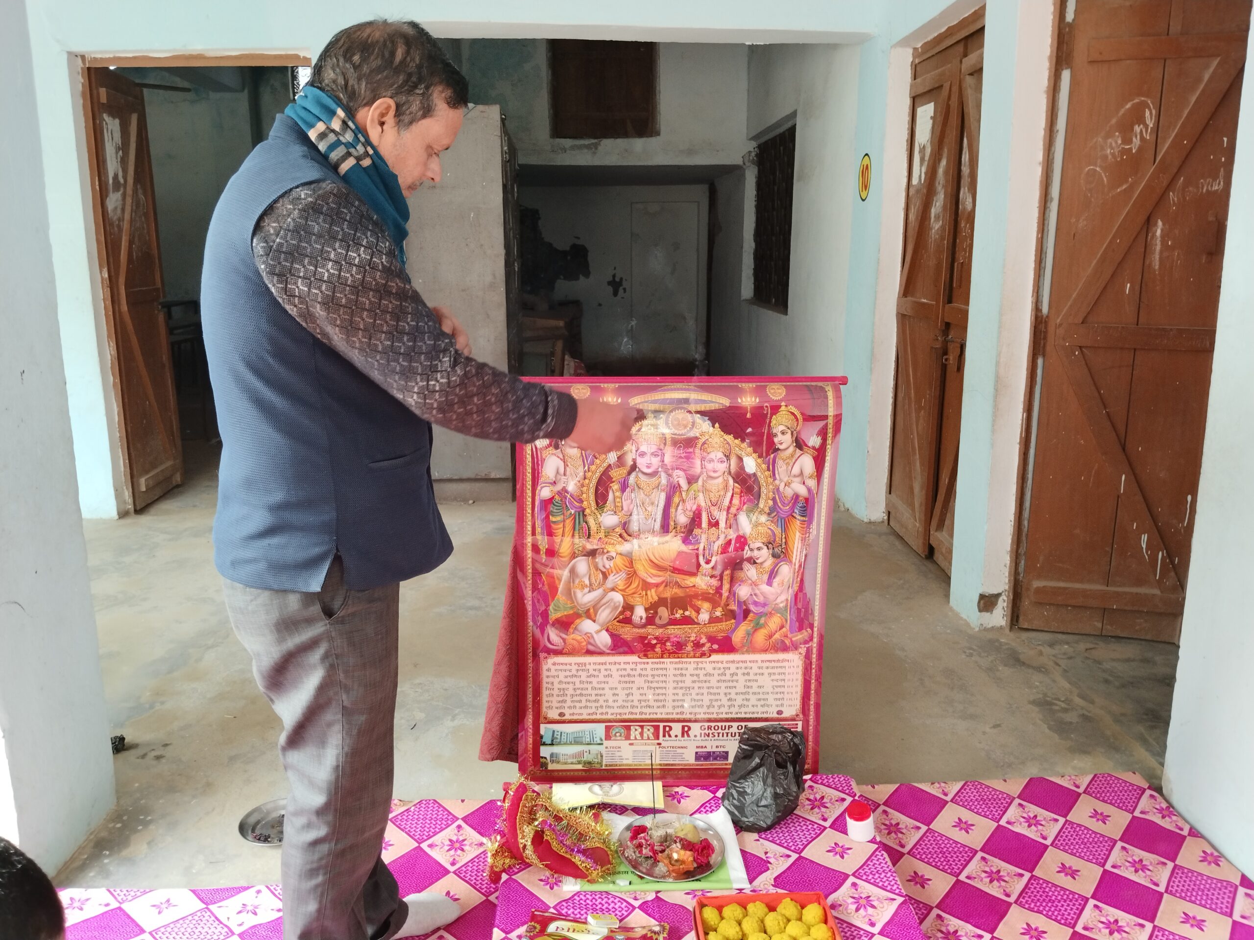 परसपुर गोंडा : विकासखंड परसपुर क्षेत्र अंतर्गत बेनी माधव जंगबहादुर इंटर कालेज में विद्यालय के प्रबंधक बृजेश सिंह व प्रधानाचार्य दिनेश सिंह के नेतृत्व में श्रीराम मंदिर प्राण प्रतिष्ठा कार्यक्रम के शुभ अवसर पर श्रीरामचरितमानस के सुन्दरकाण्ड पाठ का आयोजन किया गया । तत्पश्चात प्रसाद वितरण किया गया। विद्यालय के प्रधानाचार्य दिनेश सिंह ने बताया कि अयोध्या में मर्यादा पुरूषोत्तम भगवान श्रीराम मंदिर के प्राण प्रतिष्ठा कार्यक्रम के तहत अपनी खुशी का इजहार करते हुए भोर पहर से रामाधुन एवं तुलसीकृत श्रीरामचरितमानस के सुन्दरकाण्ड पाठ व आरती भजन के पश्चात प्रसाद वितरण किया गया । इस दौरान विद्यालय के प्रबंधक बृजेश सिंह,प्रधानाचार्य दिनेश सिंह , राम सिंह,अरविंद सिंह,अनिरुद्ध तिवारी,प्रिंस,बृज कुमार,नीरज सिंह , विपिन सिंह सभासद, प्रीतम सिंह रजनीश,रोहित यादव,साधू बलई,स्वामी दयाल मौर्य,सुकई मौर्य समेत विद्यालय की छात्र छात्राएं उपस्थित रहीं।